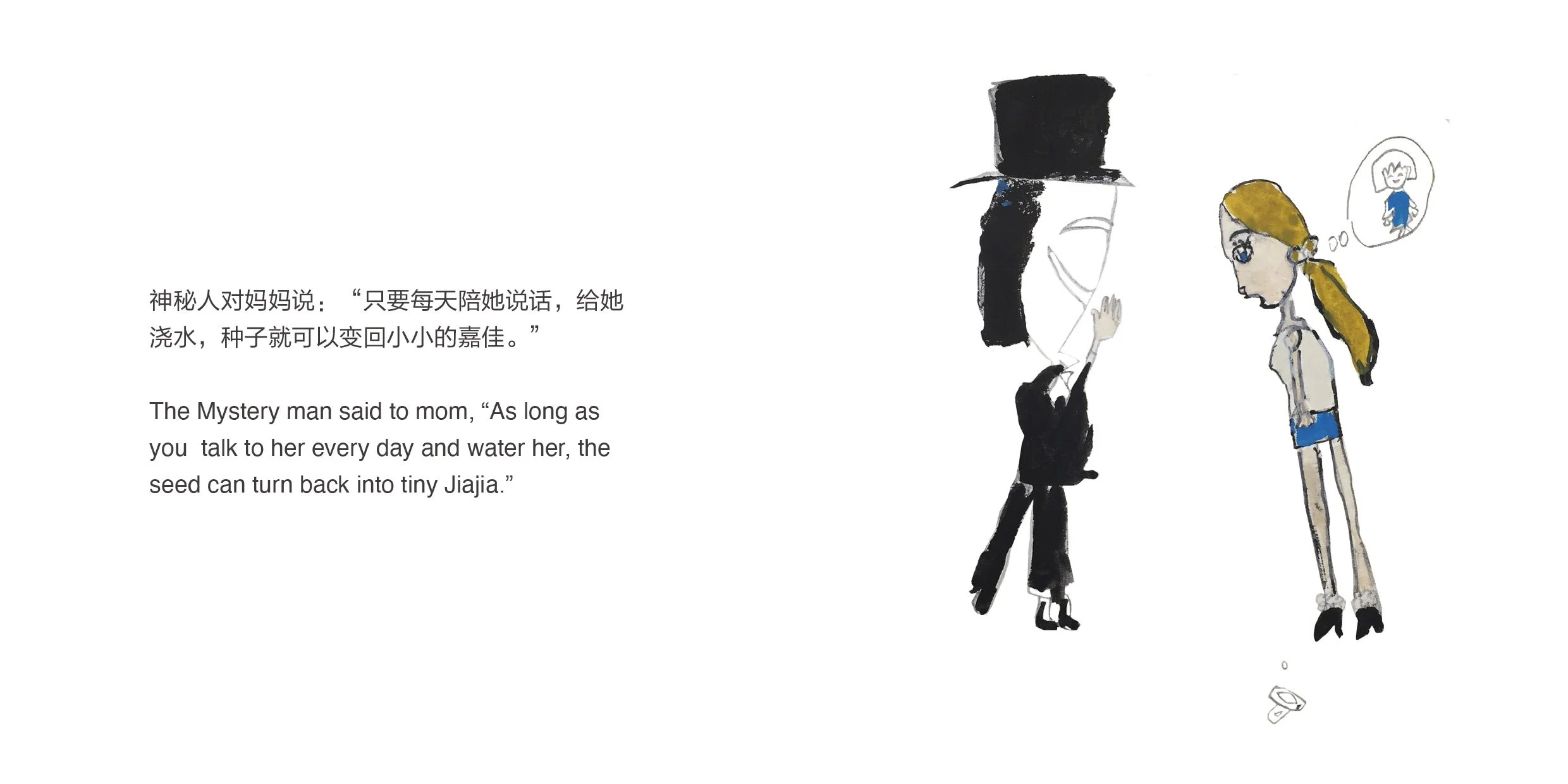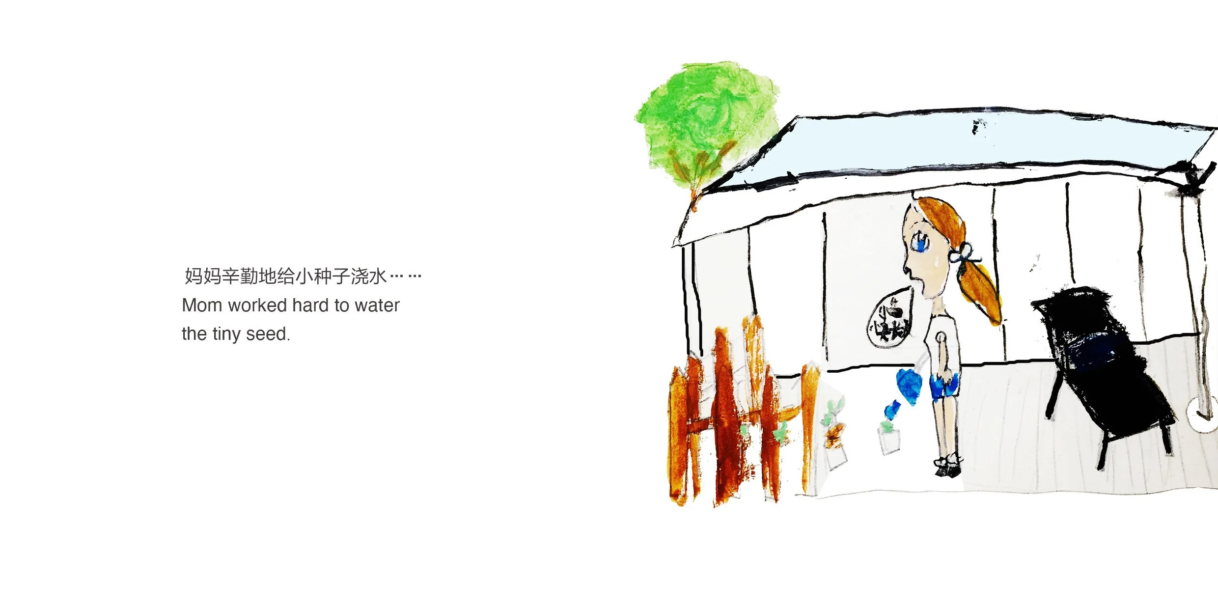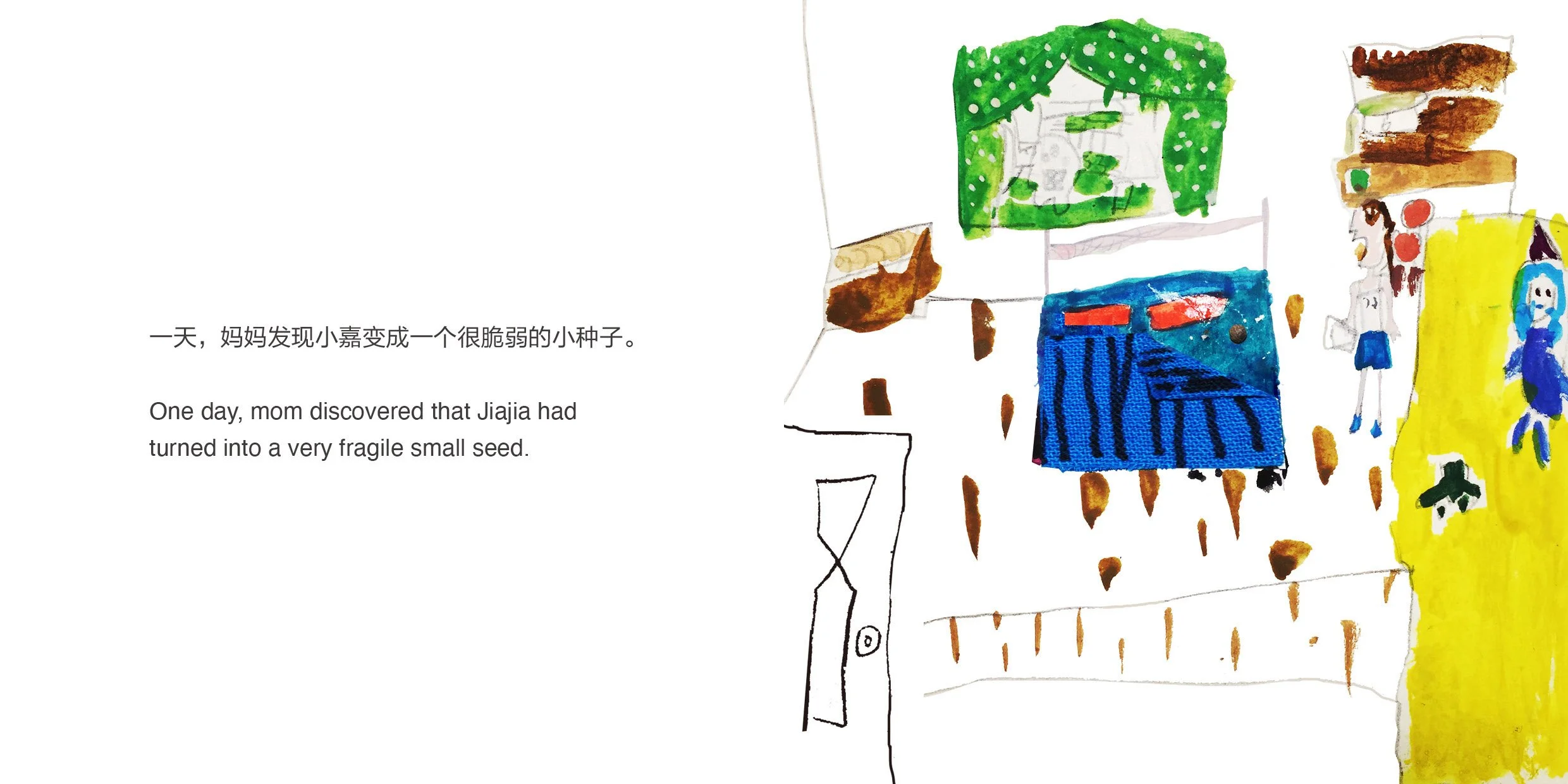 SHU SHU childish series A Child Who Became a Seed was created by Jiajia when she was six years old. She hoped that her mom would spend more time with her after reading this story, which is a simple and rustic wish of a six-year-old girl.